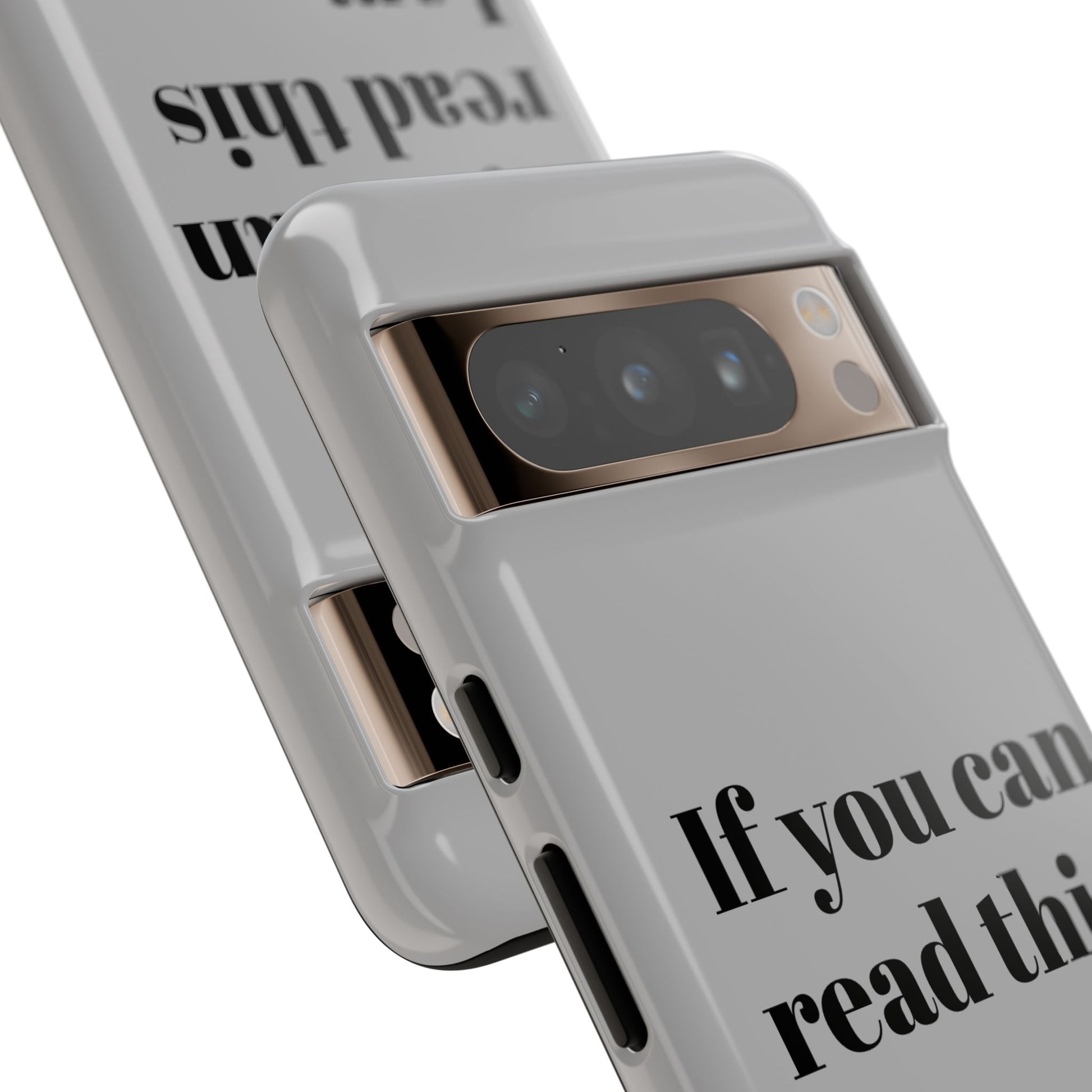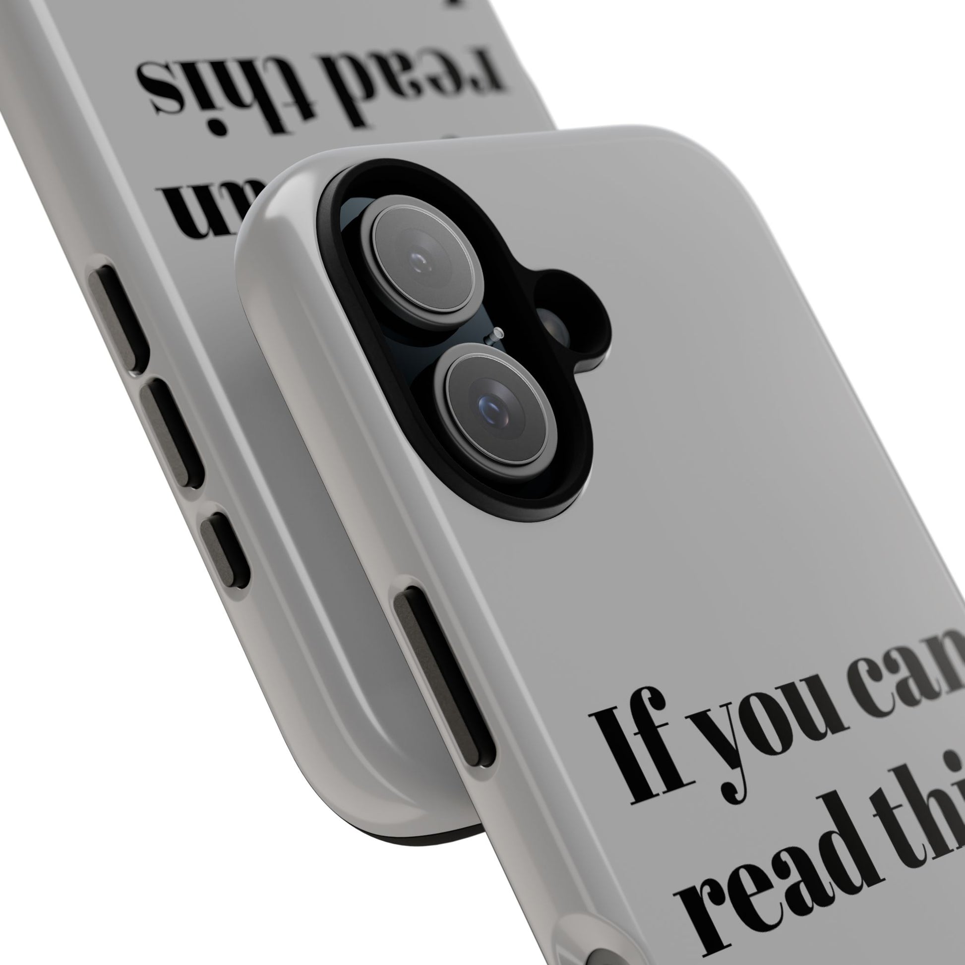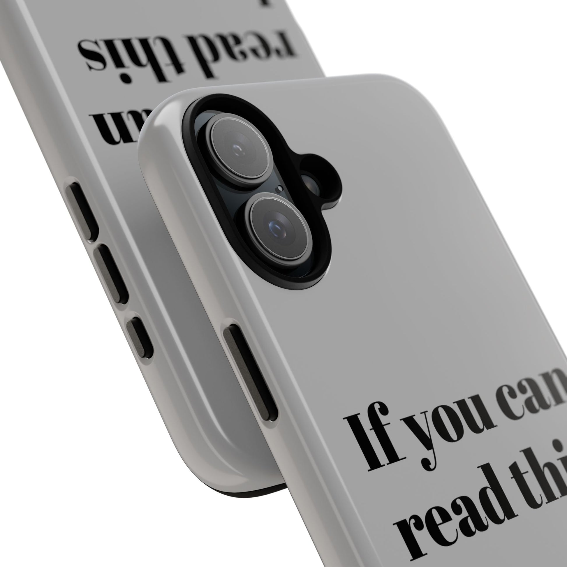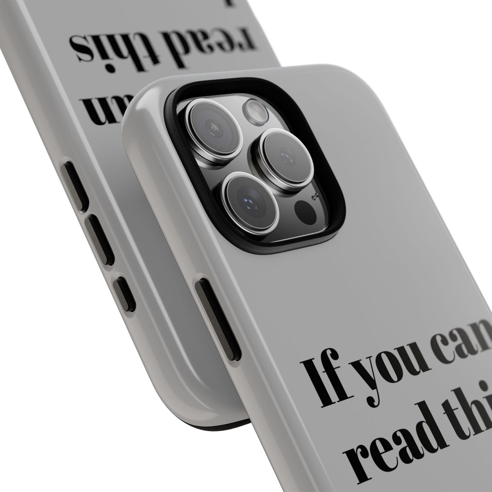 A sturdy protective phone case with a dry, tongue-in-cheek message: “If you can read this I am ignoring you.” The matte gray shell and bold black serif type create a minimalist, slightly sardonic look that reads clearly at a glance. Built as a dual-layer, impact-resistant case with a TPU silicone inner liner and a polycarbonate outer shell, it offers reliable shock absorption without adding bulk. The finish options (glossy or matte) keep the statement crisp while UV-resistant inks and certified materials help the print stay true outdoors. Clear port openings and support for wireless charging make it practical for everyday use. Designed for adults and made from quality components sourced from South Korea, this case balances attitude with real drop protection and user-friendly details.