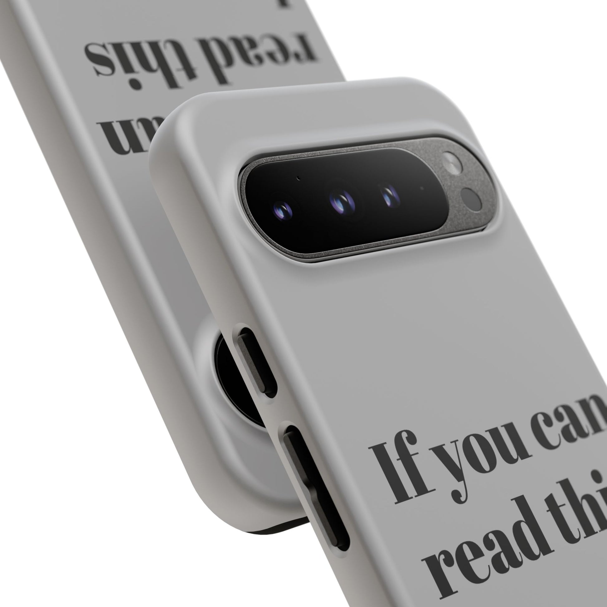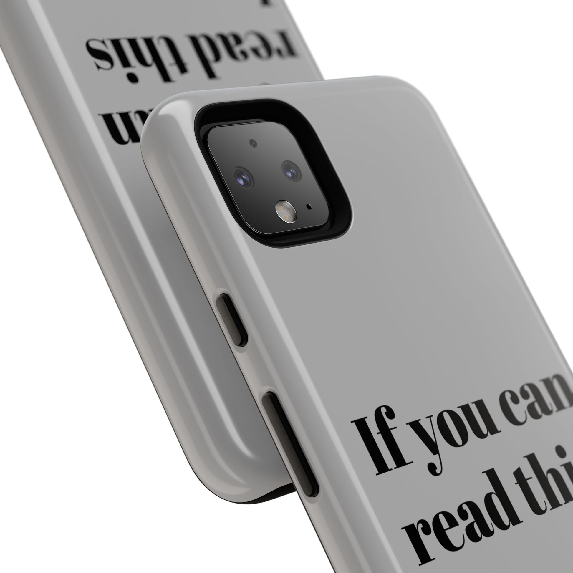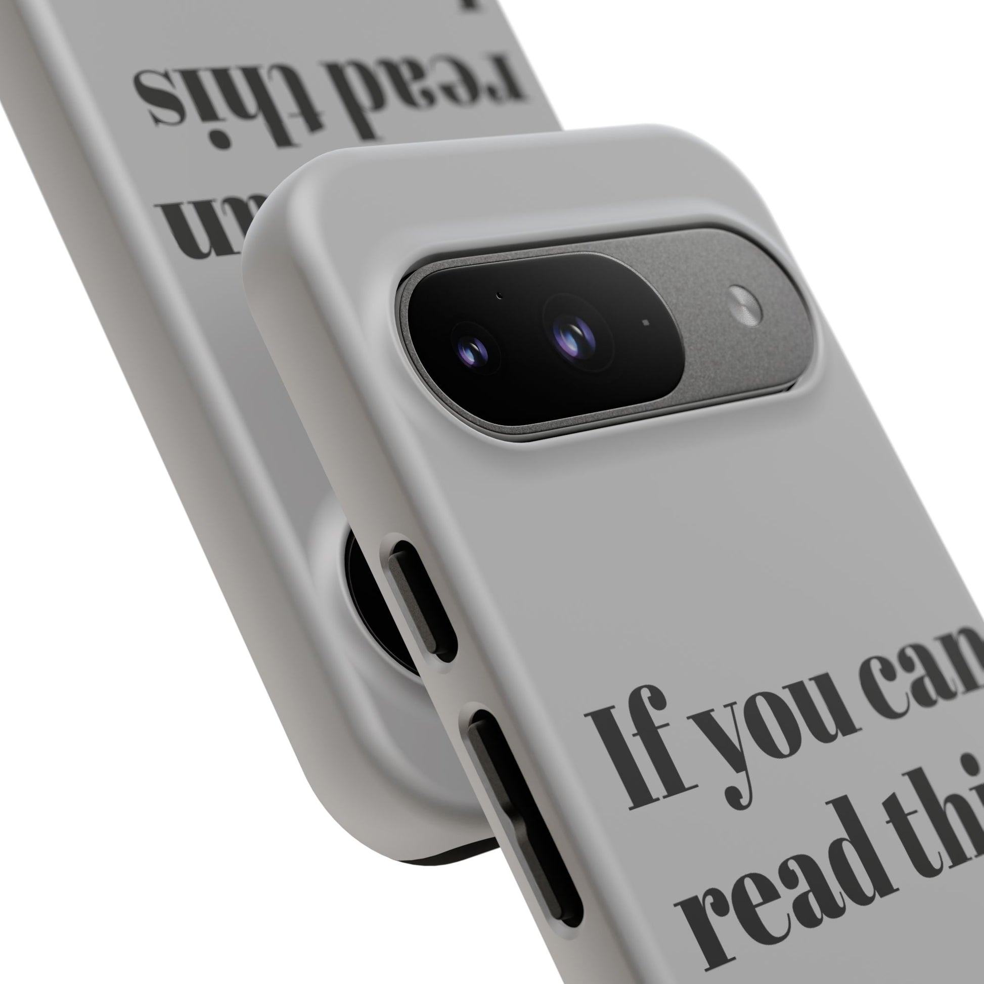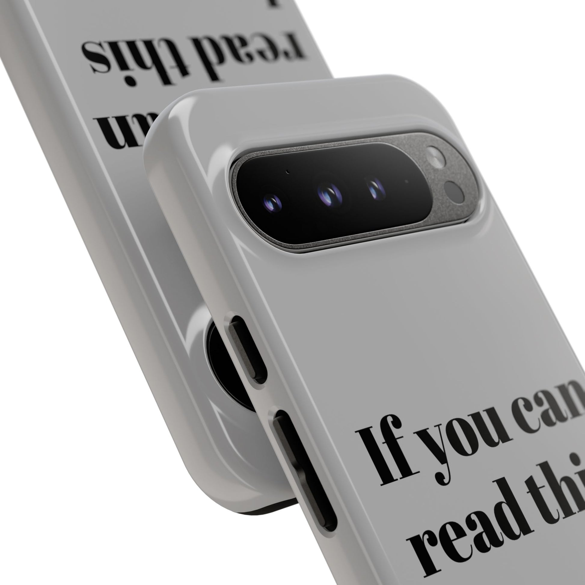 A sturdy protective phone case with a dry, tongue-in-cheek message: “If you can read this I am ignoring you.” The matte gray shell and bold black serif type create a minimalist, slightly sardonic look that reads clearly at a glance. Built as a dual-layer, impact-resistant case with a TPU silicone inner liner and a polycarbonate outer shell, it offers reliable shock absorption without adding bulk. The finish options (glossy or matte) keep the statement crisp while UV-resistant inks and certified materials help the print stay true outdoors. Clear port openings and support for wireless charging make it practical for everyday use. Designed for adults and made from quality components sourced from South Korea, this case balances attitude with real drop protection and user-friendly details.