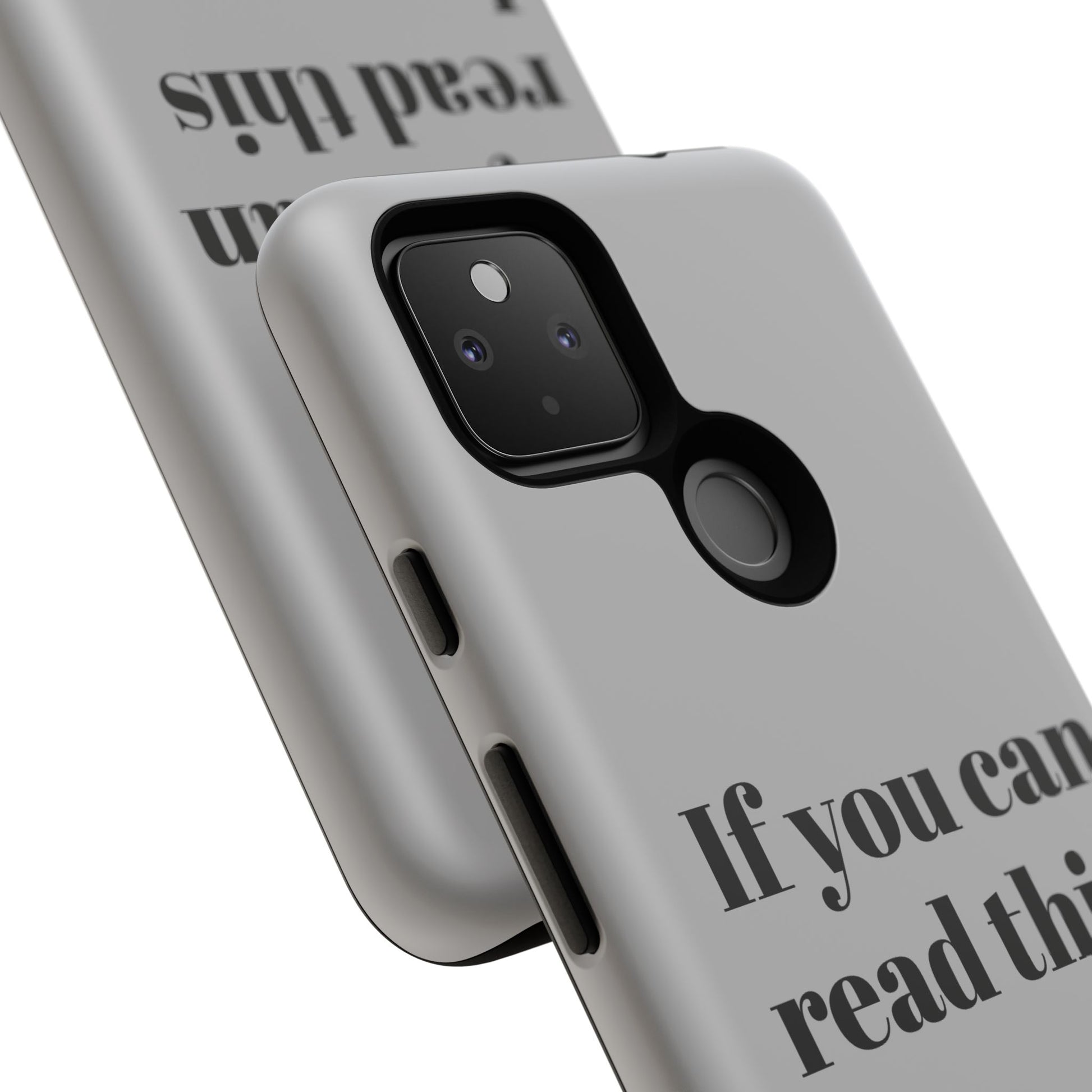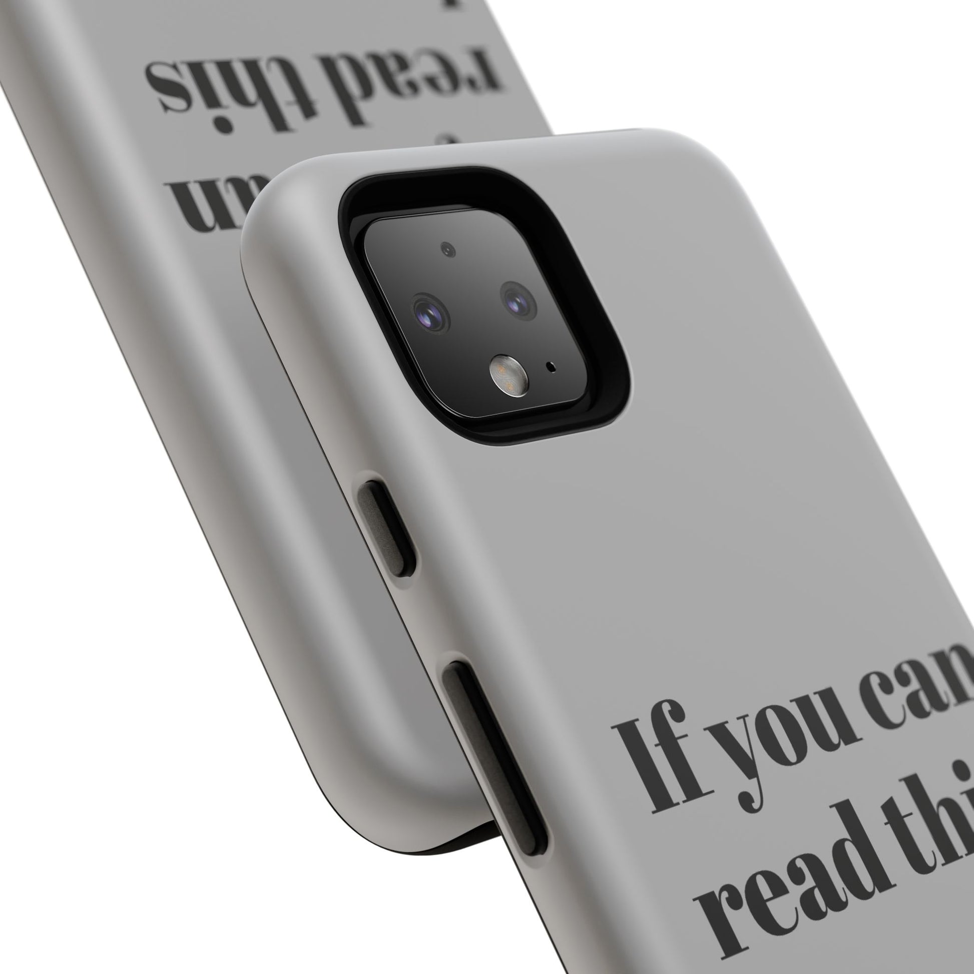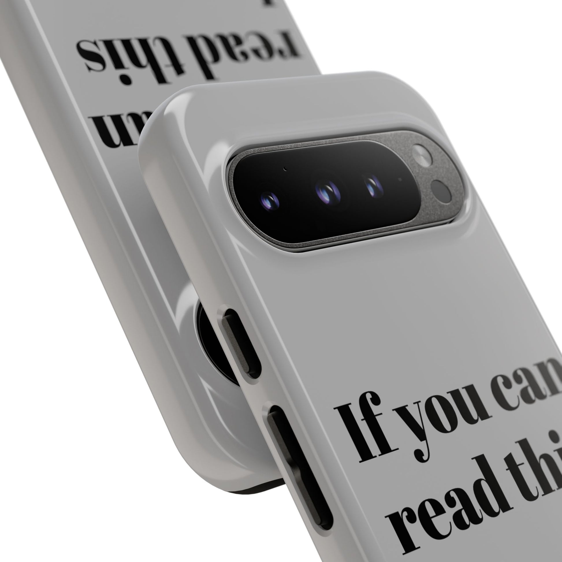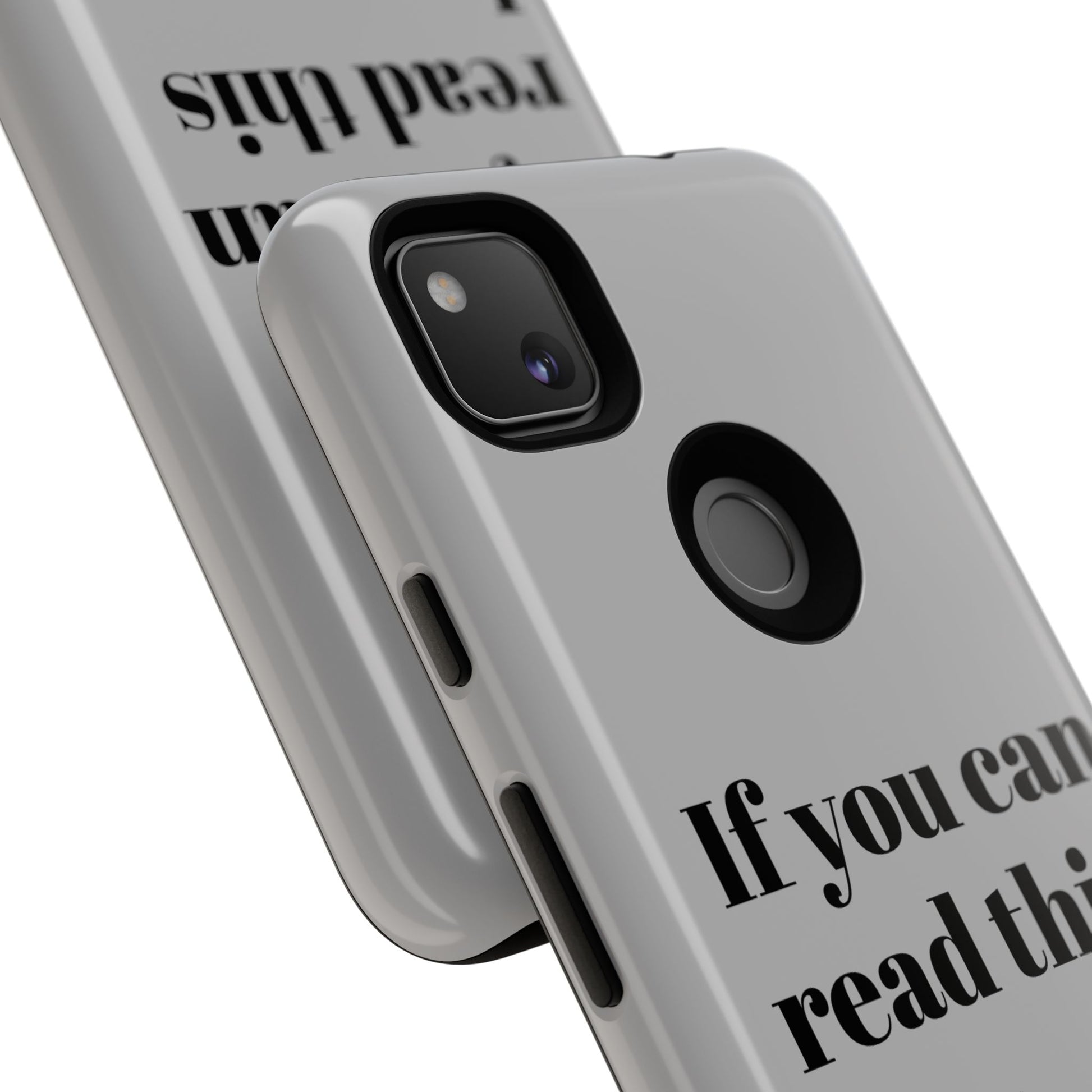 A sturdy protective phone case with a dry, tongue-in-cheek message: “If you can read this I am ignoring you.” The matte gray shell and bold black serif type create a minimalist, slightly sardonic look that reads clearly at a glance. Built as a dual-layer, impact-resistant case with a TPU silicone inner liner and a polycarbonate outer shell, it offers reliable shock absorption without adding bulk. The finish options (glossy or matte) keep the statement crisp while UV-resistant inks and certified materials help the print stay true outdoors. Clear port openings and support for wireless charging make it practical for everyday use. Designed for adults and made from quality components sourced from South Korea, this case balances attitude with real drop protection and user-friendly details.